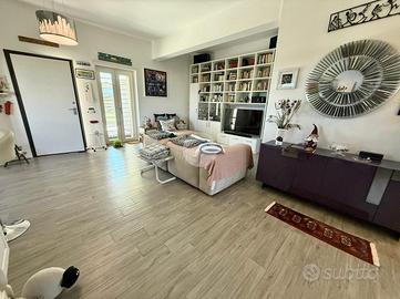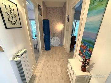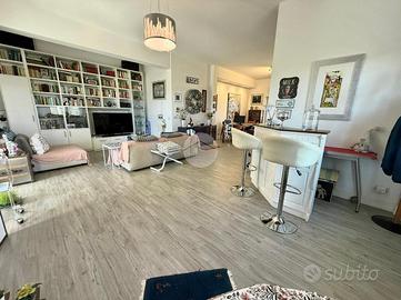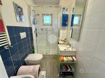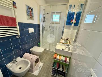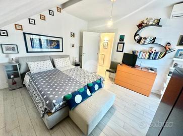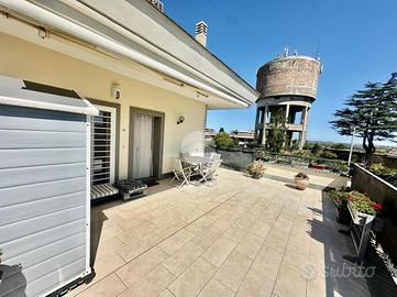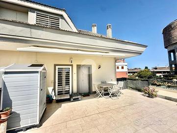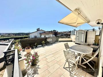 Vitinia - Via Castiglion De Pepoli Nella parte alta di Vitinia, proponiamo in vendita attico e superattico in villa totalmente ristrutturata nel 2015 con vista panoramica. Uno spazioso terrazzo privato di c.a. 40 mq con esposizione ad est ci accompagna all'interno dell'immobile disposto su due livelli residenziali. Internamente composto da salone doppio, cucina, due camere matrimoniali di cui una con cabina armadio, facilmente ricavibile terza camera, due bagni entrambi finestrati e due balconi. Completamente ristrutturata nel 2015, sia internamente che esternamente, la proprietà è dotata di infissi doppio vetro PVC, zanzariere, inferriate, condizionatori caldo/freddo, videocitofono e impianto d'allarme. L'esposizione Est-Ovest rende l'appartamento luminoso per tutta la giornata. Completa la proprietà un box auto di 22 mq.