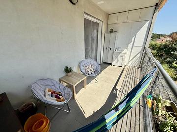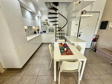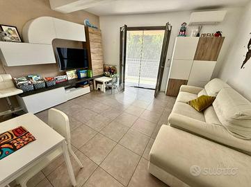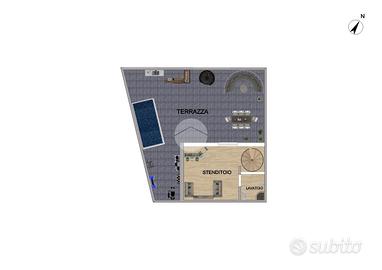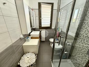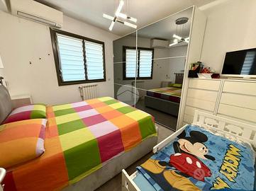 Via Luigi Pietrobono - Casal Bernocchi In un contesto residenziale e silenzioso proponiamo in vendita un appartamento trilocale disposto su due livelli, all'interno di una palazzina costruita nel 2014. L'immobile è internamente composto da: soggiorno con cucina a vista, camera matrimoniale, cameretta, bagno finestrato e balcone. Una comoda scala interna porta al piano superiore, composto da lavatoio, stenditoio e l'accesso esclusivo a uno spazioso terrazzo con esposizone sud/ovest di circa 80m², attualmente in fase di ristrutturazione. Ristrutturato nel 2014 l'immobile si presenta in ottimo stato, dotato di infissi in legno doppio vetro, zanzariere, serrande elettriche, tende da sole, videocitofono e predisposizione per l'installazione di condizionatori. Completano la proprietà una cantina e un posto auto coperto al piano S1e raggiungibili direttamente tramite ascensore.