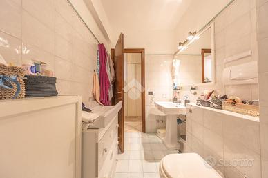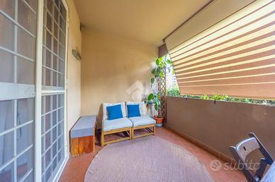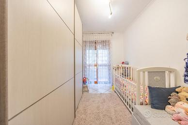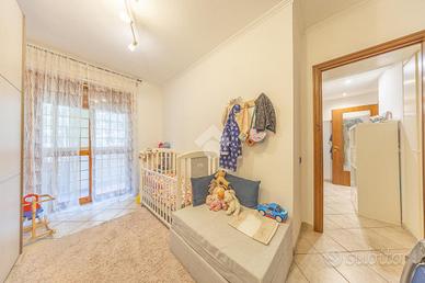 La zona notte, ben distinta dalla zona giorno, è composta da disimpegno, bagno finestrato, camera matrimoniale e seconda camera con accesso a un balcone verandato con vetrate mobili, che dona luce e ariosità agli ambienti.