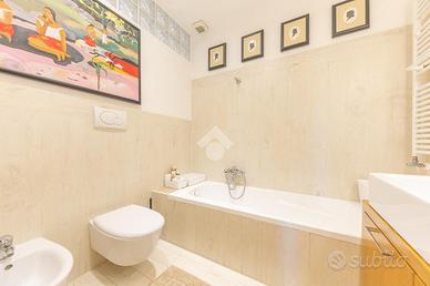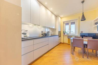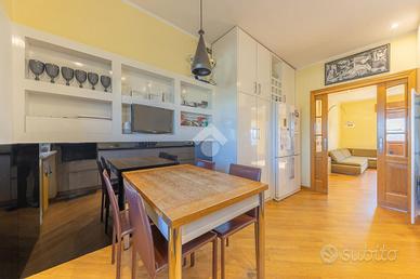 un luminoso soggiorno, cucina separata e abitabile, due camere matrimoniali e doppi servizi, di cui uno en suite.