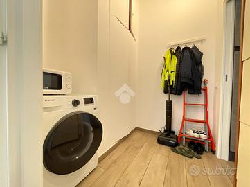 L'immobile è composto da un ingresso che si apre su un'ampia zona living, dotata di un'elegante e funzionale cucina, due comode camere da letto, un bagno finestrato completo di box doccia e una comoda zona lavanderia corredata da armadiature a muro.
