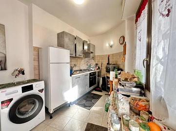 Varcando la porta d'ingresso, si viene accolti da un ambiente giorno luminoso e ben organizzato, con l'angolo cottura integrato nel soggiorno.