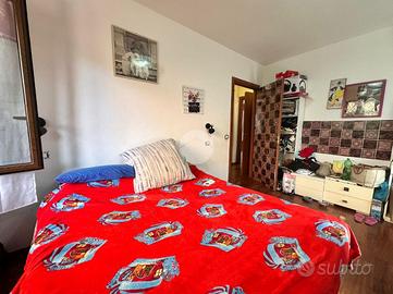 La zona notte si sviluppa in modo funzionale e comprende una spaziosa camera matrimoniale e una cameretta adatta a molteplici usi, mentre il bagno con finestra offre una piacevole luminosità naturale.