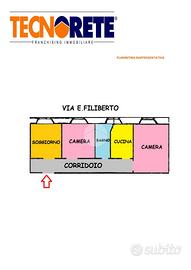 Soggiorno, due camere da letto, cucina semi-abitabile e bagno finestrato.