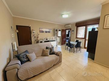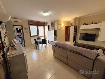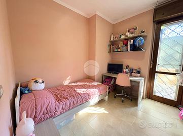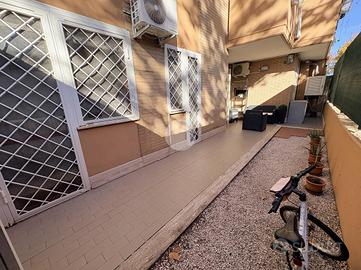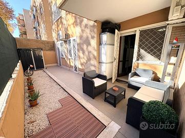 Giardino di Roma - Via Francesca Bertini Proponiamo in vendita un appartamento trilocale posto al piano terra di una palazzina di quattro con giardino pavimentato di c.a. 40 mq. Internamente composto da: ingresso, salone, cucina separata, camera matrimoniale, cameretta e bagno finestrato con doccia. Internamente ristrutturato nel 2015, dotato di allarme volumetrico, perimetrale e video sorveglianza, infissi doppio vetro in legno e predisposizione per il videocitofono. Completano la proprietà posto auto coperto e cantina.
