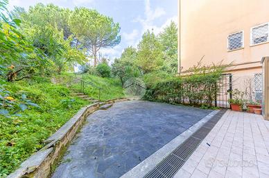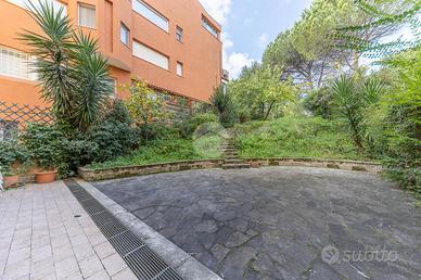 La TECNORETE Camilluccia/Cortina D'Ampezzo propone la vendita di un ampio appartamento con giardino di 270 mq, situato all'interno di un esclusivo comprensorio con servizio di portineria H24 e grandi spazi verdi.