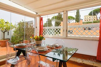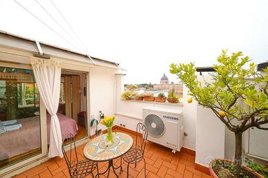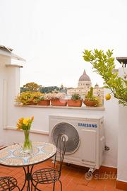 - Per il terrazzo, ampio e vivibile, con affacci aperti su San Pietro, sul Gianicolo e sulle Mura Aureliane: uno spazio esterno raro in zona, ideale per cene all'aperto, momenti di relax e per godere ogni giorno di un panorama d'eccezione;