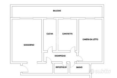 Trilocale composto da ingresso, soggiorno, disimpegno, cucina abitabile, cameratta, camera da letto matrimoniale, bagno e ripostiglio, comodo balcone.