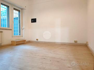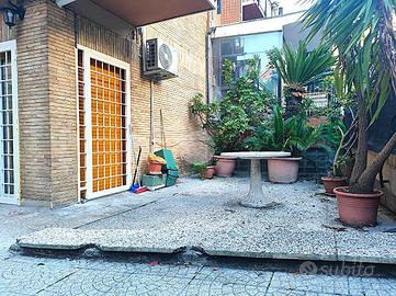 TALENTI - VIA FERDINANDO MARTINI - "Con i piedi per terra e la testa un po' più in là" Vi presentiamo Signori, una soluzione al piano terra con giardino e passo carrabile privato: immaginazione e progettualità per una Casa da rimodulare a propria misura. Nell'area più alta e storica del quartiere Talenti, dove con pochi passi si può raggiungere tutto quello di cui si ha bisogno, proponiamo la vendita, in una palazzina in cortina, di un appartamento trilocale posto al piano terra con ampio giardino privato pavimentato e passo carrabile interno alla proprietà. Varcata la soglia di casa, l'ingresso ci invita a conoscere la Casa: proseguendo, il soggiorno con elegante pavimentazione in marmo e doppia porta finestra sullo spazio esterno, che dona movimento, luminosità ed aria a questo ambiente. La cucina è un ambiente separato dal soggiorno, ove poter collocare comodamente un tavolo con quattro sedie e gode di balcone di servizio. Nei pressi della cucina, un pratico ripostiglio - dispensa: uno spazio polifunzionale, in cui, in ottica di una ristrutturazione, è possibile creare un bagno di servizio. Proseguendo, la zona notte è composta da due ampie camere matrimoniali, dalla metratura generosa tipica dell'edilizia di un tempo: entrambe godono di un affaccio sul giardino privato di proprietà e, tra le due, un comodo servizio completo di finestra e doccia. Plus di questa soluzione è l'ampio spazio esterno di cui è dotata la proprietà: più di 100 mq di giardino privato pavimentato, in cui godere di un pranzo all'aria aperta, di giochi con il proprio figlio, di spensieratezza con il proprio cane o semplicemente di un po' di relax, apprezzando ciò che non è sempre semplice trovare in un quartiere pulsante di attività e densamente abitato. La soluzione presenta infissi in pvc con doppi vetri e serrande motorizzate; riscaldamento e condizionamento autonomi ed, inoltre, tripla esposizione. La proprietà beneficia inoltre di possibilità di parcheggio nel proprio giard