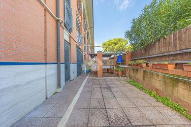 Proponiamo in vendita un immobile piano terra con giardino, con posto auto interno e cantina. L'immobile è composto da: soggiorno, cucina, due camere da letto e bagno.