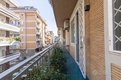 L'immobile è composto da un ampio ingresso, salone doppio, cucina abitabile, due camere da letto, doppi servizi, armadi a muro, ripostiglio e due balconi.