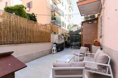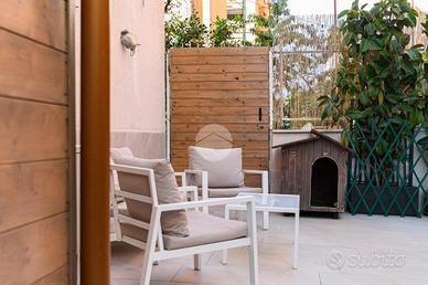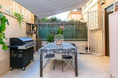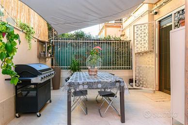 In una delle vie più tranquille e riservate di Bravetta, in Via de Veralli, proponiamo in vendita un delizioso trilocale di 70 mq completamente ristrutturato, situato al piano terra con un giardino privato pavimentato.