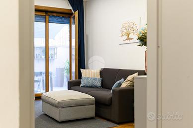 L'appartamento si apre su un accogliente soggiorno con angolo cottura, dal quale si accede direttamente al giardino: uno spazio curato e funzionale, perfetto per rilassarsi, ricevere amici o vivere momenti all'aperto in totale privacy.