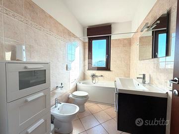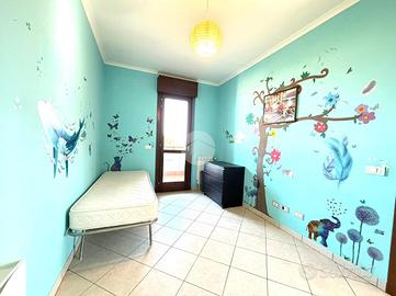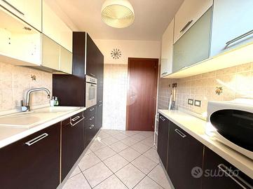 L'immobile si apre su un accogliente soggiorno con zona pranzo e zona divani, ambiente moderno e funzionale ideale sia per la quotidianità che per momenti di convivialità, inoltre la cucina separata garantisce praticità e funzionalità; la zona notte è composta da una camera da letto matrimoniale, ampia e ben organizzabile, e da una cameretta doppia, infine troviamo due bagni uno con vasca e l'altro con doccia, entrambi finestrati. Uno dei punti di forza dell'appartamento è senza dubbio il terrazzo uno spazio esterno davvero vivibile e loggiato. La soluzione si presenta perfetta per chi desidera un'abitazione moderna, luminosa, situata in un contesto recente residenziale. Posto auto coperto e cantina di proprietà vanno a completare l'immobile e renderlo ancora più esclusivo. Altre peculiarità dell'immobile: riscaldamento autonomo con caldaia ed elementi, infissi doppio vetro legno, porta blindata, consumo interno dell'acqua compreso della quota mensile condominiale, ascensore e pannelli solari per l acqua calda per poter avere un risparmio energetico nei mesi caldi.