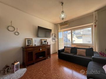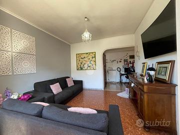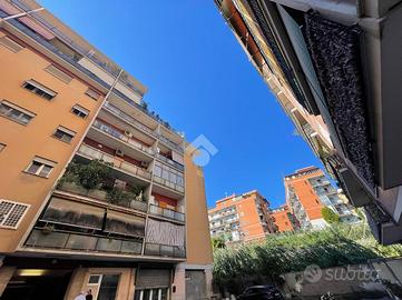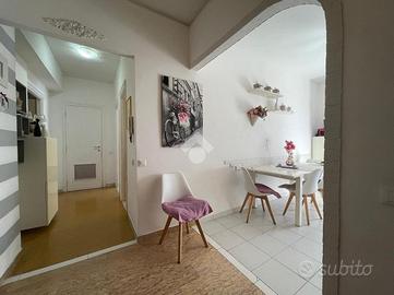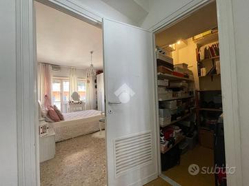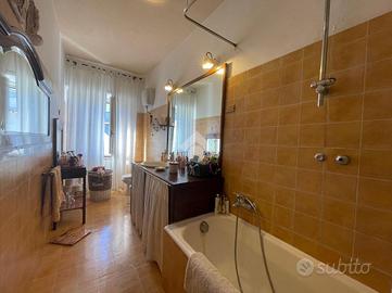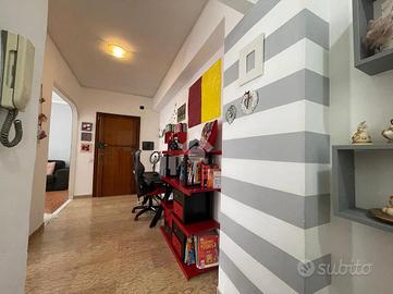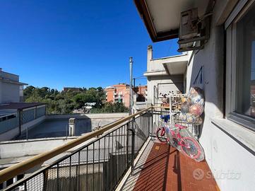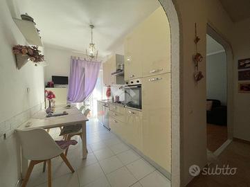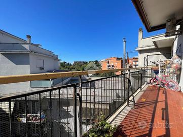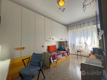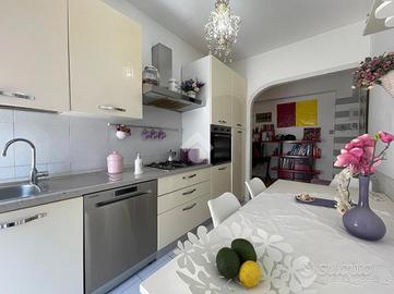 La cucina, separata, permette di gestire al meglio gli spazi con un ampia porta finestra che conduce al balcone principale comunicante con il soggiorno.
