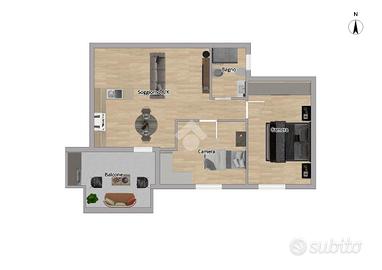 L'appartamento è composto da un comodo soggiorno con cucina a vista, terrazzo abitabile, camera matrimoniale, cameretta e bagno finestrato.