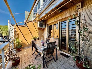 Mostacciano - Via Alberto Litta Modignani L'agenzia immobiliare Tecnocasa Mostacciano propone in vendita un appartamento trilocale di ampia metratura, posto al quinto piano di una palazzina in cortina di cinque oltre mansarde, recentemente ristrutturata. L'immobile è ubicato in un contesto signorile e residenziale immerso nel verde ma adiacente a tutti i principali servizi. Internamente è così composto: ingresso, ampio salone, ripostiglio, cucina, disimpegno, due camere, doppi servizi entrambi finestrati, uno con vasca e l'altro con doccia, un balcone e un terrazzo. L'appartamento è dotato di infissi in PVC/doppio vetro rivestiti in legno, parquet, condizionatori caldo/freddo e due comodi soppalchi nel disimpegno. Grazie alla tripla esposizione angolare a Est, Sud e Ovest, l'appartamento gode di ottima luminosità. A completare la proprietà un posto auto coperto.