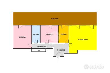 ad uso comune c'è una cucina abitabile con tutti gli accessori, bagno con doccia, e corridoio con ampia armadiatura.