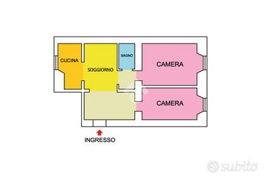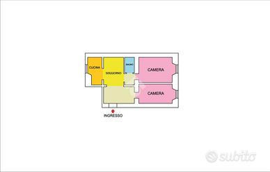 L'immobile, di 108 mq commerciali, si trova al quinto piano ed è internamente da rivedere, rappresentando una soluzione interessante per chi desidera personalizzare gli spazi secondo le proprie esigenze. L'ingresso conduce a un ampio disimpegno che distribuisce gli ambienti: da qui si accede alla zona giorno, collegata a un cucinotto con affaccio interno, mentre la zona notte è composta da due camere con affaccio libero e da un bagno.