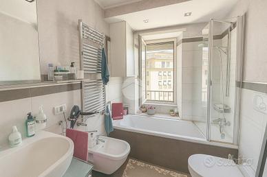 VIGNA PIA- PROPONIAMO IN VENDITA in Via Pietro Venturi Nel cuore della zona Portuense,un raffinato e panoramico Trilocale di 95 mq, situato al sesto piano di uno stabile in cortina dotato di servizio di portineria. L'immobile gode di un'eccellente esposizione e di un suggestivo affaccio panoramico sul fiume Tevere e sulla Basilica di San Paolo, regalando un'atmosfera suggestiva. L'appartamento si presenta in buono stato e si compone come segue: * Ingresso:Ampio e accogliente,rappresenta un perfetto spazio di disimpegno che introduce alla zona giorno e agli altri ambienti dell'abitazione. * Salone:Spazioso e luminoso,con ampia porta finestra che offre una vista aperta e suggestiva verso l'orizzonte. * Cucina:Funzionale e ben organizzata, separata dal salone, dotata di balcone, perfetta per chi ama cucinare in un ambiente riservato. * Camera da letto matrimoniale:Generosa nelle dimensioni, silenziosa e ben illuminata, rappresenta un'oasi di tranquillità. * Seconda camera:Perfetta come stanza per ragazzi, studio o camera per gli ospiti,è anch'essa ben finestrata e versatile. * Doppi servizi:L'appartamento dispone di due bagni,uno dotato di doccia e l'altro con vasca, pensati per offrire massima praticità. * Zona lavanderia:Separata e funzionale, rappresenta uno spazio molto utile per la gestione quotidiana della casa. * Comodo ripostiglio,finestrato ideale per garantire ordine e discrezione.Completa la proprietà una cantina di pertinenza, accessibile anche da un secondo ingresso dello stabile, ideale come spazio di deposito o per organizzare oggetti di uso meno frequente. Possibilità di acquistare l'arredo presente,selezionato con gusto e perfettamente integrato negli spazi. Cliccando su 'PLANIMETRIE' è possibile visionare gli interni dell'appartamento in oggetto. VISIONABILE PREVIO APPUNTAMENTO TELEFONICO CONTATTACI AL NUEMRO 06.55.30.0536