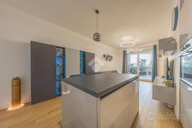 Roma - Talenti Via Dario Niccodemi Complesso Residenziale "Le Dalie" - Nuova Costruzione 2024 Nel cuore dell'elegante quartiere Talenti, adiacente al centro commerciale Talenti Village, all'interno del prestigioso complesso residenziale "Le Dalie", proponiamo in vendita un raffinato trilocale posto al quarto piano, espressione di un nuovo concetto di abitare, dove comfort, design e innovazione tecnologica convivono in perfetto equilibrio. L'appartamento si apre su una luminosa zona living con angolo cottura, moderna e funzionale. La zona notte è composta da una camera matrimoniale, una seconda camera da letto e un bagno finestrato, realizzato con materiali di pregio e finiture contemporanee. Elemento distintivo della proprietà è il terrazzo abitabile, accessibile da tutti gli ambienti della casa, un vero prolungamento dello spazio interno, ideale per vivere l'esterno in totale privacy, tra relax e convivialità. La proprietà è completa di posto auto doppio e cantina , elementi che aggiungono valore e funzionalità, garantendo comodità e praticità nella vita quotidiana. La residenza è inserita in un contesto di assoluto livello, Classe Energetica A4, e si distingue per l'elevato standard costruttivo e per le dotazioni impiantistiche d'avanguardia. Tutti gli alloggi del complesso "Le Dalie" offrono, tra l'altro: Riscaldamento e raffrescamento con impianto radiante; Murature isolanti che garantiscono un efficiente mantenimento della temperatura interna e di conseguenza un risparmio energetico; Schermature raggi solari; Infissi a taglio termico basso emissivi in legno massello con doppi vetri, gas inerte (argon) all'interno e pellicola per il filtraggio dei raggi termici e pertanto con elevato potere termoisolante; Eliminazione dei ponti termici che causano fenomeni di condensa e muffe; Sistema domotico per un controllo totale della casa; Impianto di ventilazione meccanica controllata che garantisce il ricambio ed il filtraggio dell'aria senza dover aprire l
