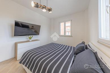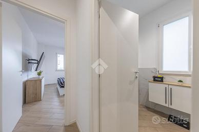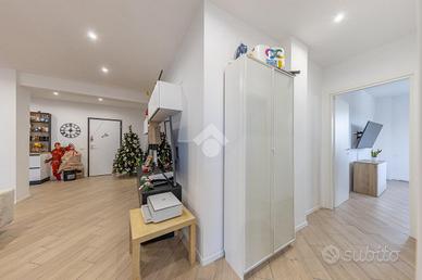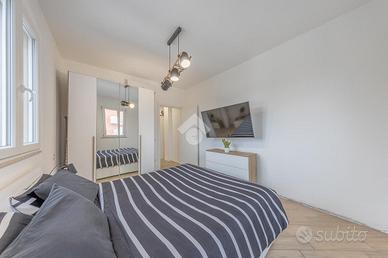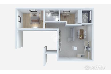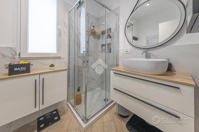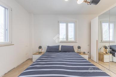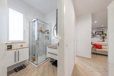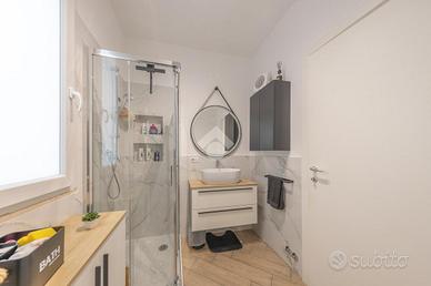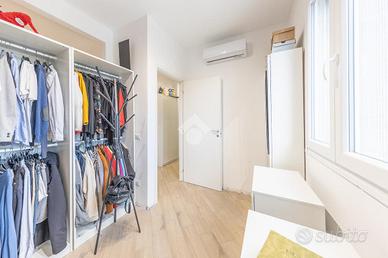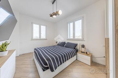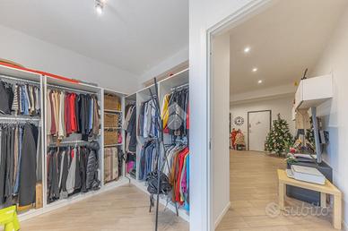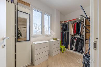 La zona notte è composta da una camera matrimoniale ampia e ben rifinita, affiancata da una comoda cabina armadio che garantisce ordine e praticità, una seconda stanza versatile, ideale come studio, cameretta o spazio multifunzionale. Completa la proprietà un bagno finestrato con doccia, moderno e rifinito con materiali di qualità.