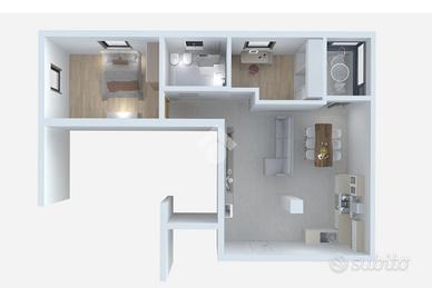 L'immobile si presenta con ambienti luminosi e razionalmente distribuiti. L'ingresso apre su un accogliente soggiorno con angolo cottura, uno spazio funzionale e ben organizzato, perfetto per la vita quotidiana e per momenti di convivialità.