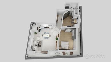 L'immobile attualmente si compone di ingresso, soggiorno, camera da letto matrimoniale, cucina, bagno, spazio lavanderia e balcone perimetrale che permette una tripla esposizione.