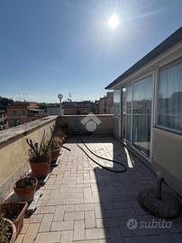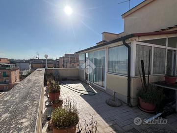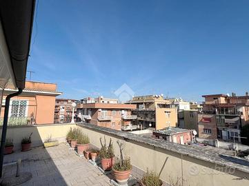Centocelle - Via dei Gelsi, proponiamo in vendita trilocale attico situato in uno stabile in tinta. La proprietà è composta da Ingresso, due camere da letto, cucina abitabile, veranda con uscita diretta sul terrazzo, soggiorno, balcone e bagno. Il piano alto e la quadrupla esposizione rendono l'appartamento molto luminoso per tutto l'arco della giornata. L'immobile è posizionato in zona ben servita sia da servizi di prima necessità che dai servizi di trasporto. Termoautonomo. LIBERO SUBITO.