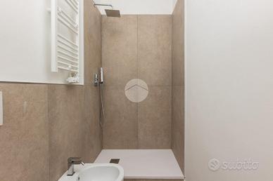 * Bagno rifinito in gres porcellanato con piatto doccia in marmo resina bianco