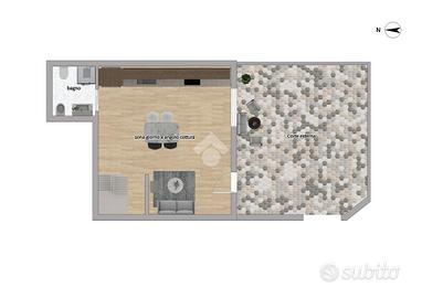 Torrino Sud -Via Mar della Cina In contesto riservato ed adiacente a tutti i principali servizi, proponiamo in vendita in comprensorio residenziale di villini a schiera una soluzione disposta su due livelli con ingresso indipendente ed ampia corte esterna privata pavimentata. Il piano terra concede l'accesso al salone con cucina a vista ed un primo servizio, con doccia. Al piano superiore, collegato da una scala interna, troviamo due camere da letto di cui una matrimoniale e l'altra singola che permette la fuoriuscita ad un altro balcone. E' presente inoltre un secondo servizio, con vasca. L'immobile presenta una pavimentazione in monocottura ed è dotato di infissi in doppio vetro/pvc, inferriate, zanzariere, riscaldamento autonomo, condizionatori caldo/freddo, armadio a muro, soppalco, videocitofono e porta blindata. Esposizione completamente a Sud. Buono stato di conservazione. Completa la proprietà un posto auto doppio coperto all'interno del garage condominiale.