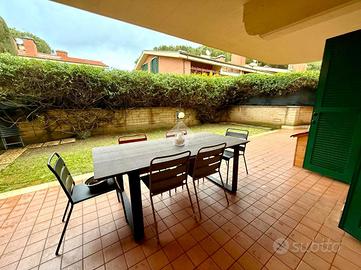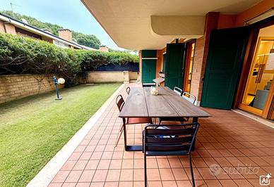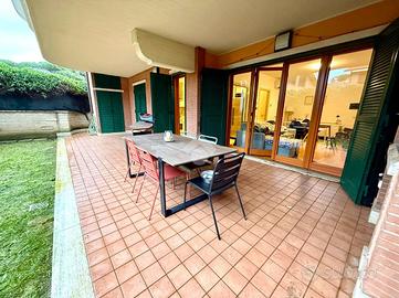 Nel complesso residenziale Pini Di Roma, proponiamo la vendita di un prestigioso trilocale al piano terra con spazio esterno, adatto per chi ama vivere in un contesto urbano unico ed esclusivo. L'accurata gestione degli spazi e l'attenzione ai particolari contribuiscono ad una abitare elegante e confortvole. L'ingresso è su un salone a vista , con una grande vetrata che permette di far entrare tutta la luminosità all'immobile, cucina separata, camera e cameretta anch'esse con accesso all'esterno, un delizioso dehors con patio e aria verde che gode di una chicca : il barbecue in muratura, perfetto per le serate estive da passare con gli amici o con la propria famiglia. L'appartamento ha doppi servizi, di cui uno con vasca idromassaggio e l'altro con doccia e finestra che affaccia su un uliveto ben curato. All'esterno troviamo inoltre un armadio a muro con zona lavanderia e un comodissimo soppalco salvaspazio. Il comfort dell'immobile è garantito da dotazioni quali portineria, parquet , videocitofono, serramenti esterni con legno pregiato con persiane in ferro blindate. Completano la proprietà un box auto con serrande avvolgibili motorizzate e due cantine al piano S1, ideali per lo stoccaggio. L'immobile ha classe energetica B, con possibilità di MUTUO GREEN. Il complesso è completamente circondato dal Parco di Veio. Adiacente al comprensorio sorge il centro sportivo NC SPORTING CLUB, fornito di palestre, piscine, campi da tennis, bar e servizi per eventi. La soluzione è praticamente a soli 10 minuti dal frequentato Ponte Milvio, a soli 2 minuti dall'azienda RAI, e a 5 minuti dall'ospedale S.Andrea. Contattaci subito per scoprire questa opportunità!