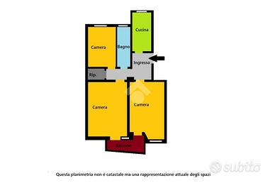 L'ingresso conduce a tre ampie camere , ideali per soddisfare diverse esigenze abitative. Proseguendo troviamo una cucina abitabile e un bagno dotato di una comoda vasca. Due delle tre stanze conducono al balcone. Completa la proprietà un pratico ripostiglio, utile per l'organizzazione degli spazi.