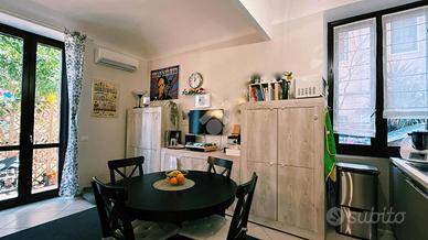 In via dei Frassini, a pochi passi dalla fermata Mirti della Metro C, proponiamo in vendita un appartamento al piano rialzato che unisce praticità e un plus sempre più raro: uno spazio esterno ampio e riservato. Oltre all'ingresso condominiale, l'immobile dispone di un'entrata indipendente: una soluzione perfetta per chi desidera più privacy, per chi rientra in casa "senza passare dal palazzo", o per chi cerca un'abitazione flessibile anche in ottica studio/lavoro. Gli interni, ristrutturati, accolgono con un ingresso che conduce al soggiorno con angolo cottura, una camera da letto, uno spogliatoio finestrato (ideale come cameretta o studio), un disimpegno e un bagno finestrato con doccia. Il protagonista è l'ampio giardino angolare di circa 80 mq, con alberi da frutto e zona orto: uno spazio da vivere davvero, tra relax, convivialità e quotidianità all'aria aperta. Caratteristiche e dotazioni: - Doppio ingresso (principale + indipendente). - Piano rialzato. - Giardino angolare di circa 80 mq con alberi da frutto e area orto. - Infissi in alluminio con doppio vetro. - Riscaldamento autonomo. - Climatizzatori caldo/freddo. - Portoncino blindato. - Vendita comprensiva di arredo cucina. - Stabile con parti comuni da ripulire/ripristinare. - Libero al rogito notarile. Soluzioni con giardino e ingresso indipendente, a due passi dalla Metro C Mirti, sono rare, non lasciartela scappare: prendi appuntamento quanto prima per vederla dal vivo!