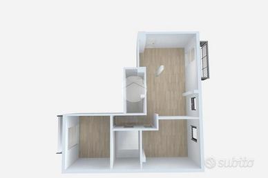 L'appartamento è composto da un'ampia zona living luminosa, con accesso al primo balcone esposto a sud, e da un angolo cottura semi indipendente. La zona notte comprende due camere da letto matrimoniali, una delle quali con accesso diretto al balcone. Completa la proprietà un ampio bagno, recentemente ristrutturato.