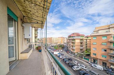 E' composto da: ingresso, cucina abitabile con accesso al balcone, un soggiorno ampio e luminoso anch'esso con accesso al balcone, due camere da letto matrimoniali di cui una con il bagno in camera, un bagno con vasca e finestra, ed infine un comodo ripostiglio.