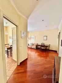 Rione Esquilino - Via di Santa Croce in Gerusalemme In una delle vie più richieste del quartiere proponiamo la vendita di un comodo trilocale. L'immobile, posto al terzo di uno stabile anni '50 servito da ascensore, si estende su una superficie di circa 90 mq e presenta una distribuzione interna razionale, che ben divide la zona giorno dalla zona notte. Un comodo ingresso ci conduce al soggiorno con accesso al balcone e alla cucina abitabile. Dal soggiorno, attraverso un corridoio dotato di armadi a muro, si accede alla zona notte che si compone di una camera matrimoniale con cabina armadio, cameretta e bagno, L'appartamento si presenta in buone condizioni interne di manutenzione. Essendo costituito al suo interno quasi unicamente da tramezzi permette tuttavia di ripensare e rimodulare la disposizione interna a seconda delle proprie esigenze. POSSIBILITA' DI ACQUISTARE SEPARATAMENTE POSTO AUTO IN AUTORIMESSA CONDOMINIALE La doppia esposizione su corti interne garantisce silenzio e tranquillità durante tutta la giornata. Ubicato in zona centrale, a due passi da tutti i maggiori servizi di pubblica utilità quali scuole di ogni ordine e grado, supermercati, ufficio postale, farmacie, stazione ferroviaria e fermate di diverse linee di trasporto pubblico su gomma e su rotaia, l'immobile si presta a svariati utilizzi. Dall'abitazione principale per famiglie o giovani coppie, all'uso investimento da mettere a reddito per brevi o lunghi periodi.