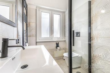 Il bagno principale è caratterizzato dalla presenza di un ampio box doccia e dalla finestra, il secondo bagno invece è un ambiente di servizio dove è stata ricavata una pratica e funzionale zona lavanderia.
