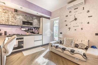 L'ingresso si apre su una pratica zona giorno open space con angolo cottura, estremamente luminosa grazie all'esposizione a sud dell'intera abitazione.