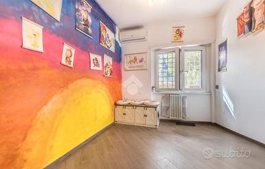 Elemento distintivo della proprietà è l'ampio giardino angolare di circa 300 mq, accessibile direttamente dalla zona giorno. Si tratta di uno spazio esterno di rara metratura per un appartamento in condominio, ed è ideale per momenti di relax, pranzi e cene all'aperto o per chi desidera un'area verde esclusiva.