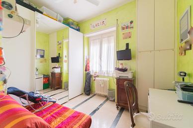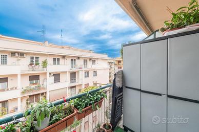 VIA VALLARSA: In stabile ben tenuto, in zona ottimamente collegata e servita, proponiamo in vendita un luminoso appartamento al settimo e ultimo piano, in ottime condizioni interne. L'immobile si apre su un ingresso che conduce all'ampio soggiorno con accesso al balcone. La zona notte è composta da una camera matrimoniale e da una cameretta, mentre la cucina abitabile, separata, dispone di un secondo balcone. Il bagno è finestrato e dotato di vasca. Completano la proprietà un ampio ripostiglio e una cantina di pertinenza. La casa è inoltre dotata di porta blindata, aria condizionata, infissi in PVC con doppi vetri, riscaldamento centralizzato e caldaia autonoma per la produzione di acqua calda. La doppia esposizione Sud/Est e Ovest garantisce un'eccellente luminosità e una piacevole ventilazione naturale durante tutta la giornata. Soluzione ideale per famiglie o per chi cerca un piano alto, silenzioso e confortevole, con tutti i principali servizi e collegamenti a portata di mano.