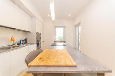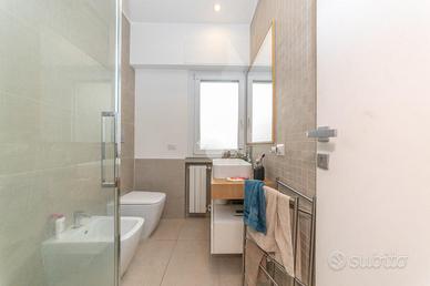 Proponiamo la vendita di un appartamento signorile di 115 mq, posto al terzo piano con ascensore in un elegante complesso residenziale con aree verdi curate e parco giochi. L'appartamento si presenta come ampio trilocale ristrutturato ed è composto da: ingresso, salone con terrazzino vivibile, cucina abitabile separata con un ulteriore terrazzino, due bagni finestrati di cui uno en suite, corridoio con un comodo armadio a muro, due camere da letto matrimoniali una con balcone, ma grazie alla regolarità della planimetria è possibile modificare in modo semplice la divisione degli spazi interni in base alle singole esigenze abitative.