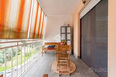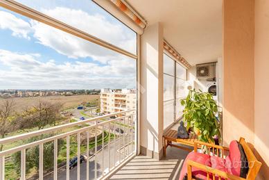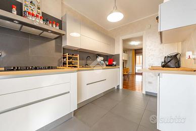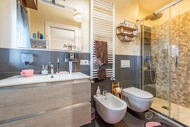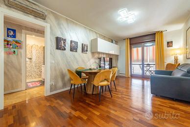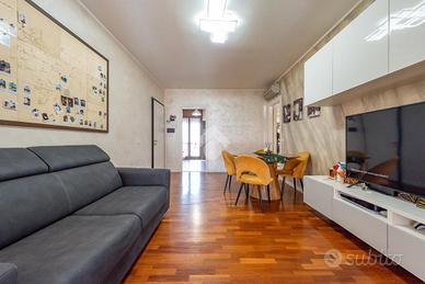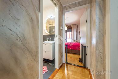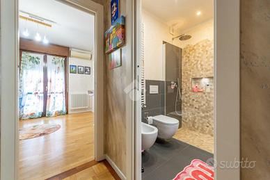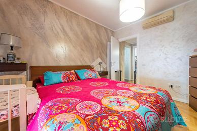 --------IMMOBILE IN PIENA PROPRIETA' ---- Disponiamo di un ampio e comodo trilocale con affaccio aperto e luminoso. La doppia esposizione est/ovest regala una luminosità straordinaria durante tutta la giornata, mentre gli affacci aperti donano respiro e privacy. Ogni ambiente dialoga con l'esterno grazie ai due ampi terrazzi, perfetti per colazioni al sole, cene estive o momenti di relax. L'appartamento, finemente ristrutturato con materiali di pregio, accoglie con un soggiorno caldo e raffinato, una cucina separata funzionale e ben organizzata, due camere confortevoli e doppi servizi moderni, di cui uno en-suite. Il parquet, le pareti in pietra spaccata, le tende in PVC cristal e l'impianto di climatizzazione con tre split creano un ambiente elegante, contemporaneo e pronto da vivere. Posto auto coperto e soffitta completano una soluzione pensata per chi cerca comfort, luce e qualità senza compromessi. Una casa che non è solo uno spazio, ma uno stile di vita.