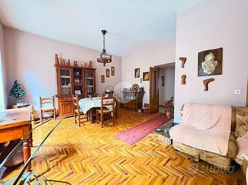 In contesto riservato e tranquillo, all'interno di uno stabile in cortina con pochi condomini e senza spese condominiali, proponiamo in vendita ampio trilocale di 115 mq con giardino privato, posto al piano terra.