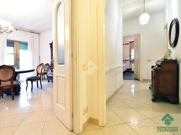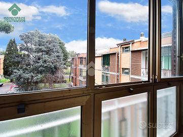 In complesso residenziale con ampi spazi verdi ad uso comune prponiamo in vendita un appartamento posto al terzo piano. L'imobile è attualmente composto da: ingresso ( con ripostiglio) con accesso all'ampio salone servito da doppia finestra e da una balconata . Dal disimpegnoo si accede alla zona notte e servizi: un'ampia cucina con tinello e balcone, 2 camere da letto matrimoniali , di cui una servita dal balcone e un'ampio bagno. Completano la proprietà un posto auto coperto, un posto auto condominiale scoperto e una cantina. Tripla esposizione