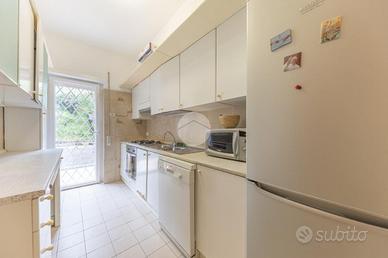 La TECNORETE Camilluccia/Cortina D'Ampezzo propone la vendita di un ampio appartamento con giardino di 270 mq, situato all'interno di un esclusivo comprensorio con servizio di portineria H24 e grandi spazi verdi.