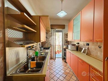 Spazioso trilocale di 112 mq in buono stato, caratterizzato da ambienti ampi e ben distribuiti. L'immobile si apre su un elegante doppio soggiorno, ideale sia per momenti di relax che per ricevere ospiti, con accesso diretto a un comodo balcone terrazzato che gode di ottima esposizione, garantendo luminosità naturale durante gran parte della giornata.