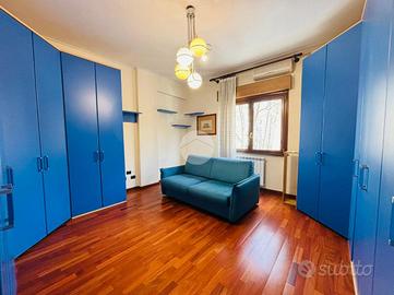 La zona notte è ben organizzata e offre due ampie camere matrimoniali, entrambe spaziose e luminose, ideali per garantire comfort e tranquillità. Completa la proprietà una terza stanza, perfetta come studio, a seconda delle esigenze. L'appartamento dispone inoltre di doppi servizi, che assicurano maggiore praticità nella vita quotidiana.