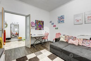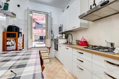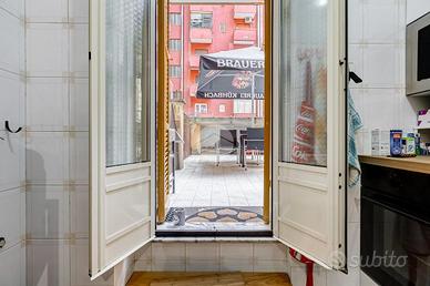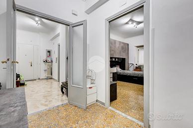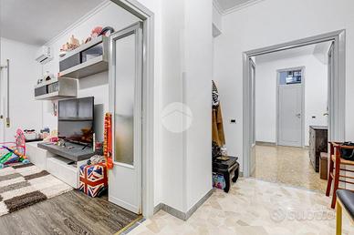 Ampio appartamento con terrazzo vivibile - Ottima opportunità Nel cuore del quartiere, in posizione strategica e servitissima, proponiamo in vendita un appartamento di generosa metratura (109 mq) con terrazzo di circa 25 mq, ideale per chi è alla ricerca di spazi comodi e funzionali senza rinunciare agli ambienti esterni. L'immobile è situato al piano terra di una palazzina in tinta di otto piani, ben mantenuta e inserita in un contesto urbano ricco di servizi. Internamente l'appartamento si presenta in buono stato abitabile, con una distribuzione degli spazi classica e molto razionale: ingresso accogliente, ampio soggiorno, due spaziose camere matrimoniali, cucina abitabile, bagno, comodo e ampio ripostiglio. Punto di forza della proprietà è il terrazzo di 25 mq, accessibile direttamente dalla cucina, perfetto per chi desidera uno spazio esterno vivibile tutto l'anno. La posizione è uno dei veri valori aggiunti: l'immobile si trova nel centro del quartiere, con tutti i principali servizi a pochi passi, tra cui negozi, supermercati, scuole, mezzi pubblici e aree verdi. Soluzione ideale per famiglie, ma anche per chi cerca un investimento grazie alla metratura e alla distribuzione degli ambienti.