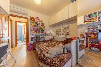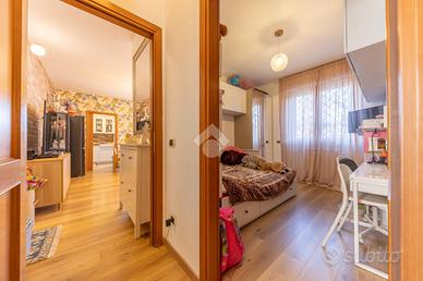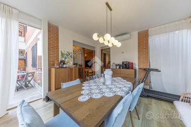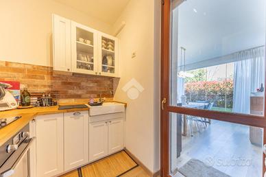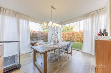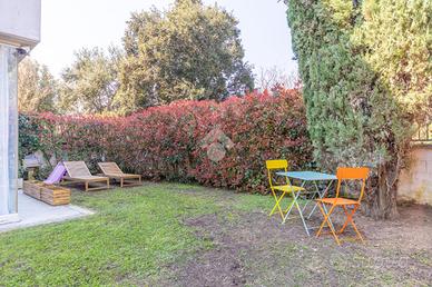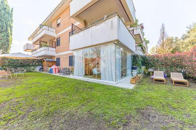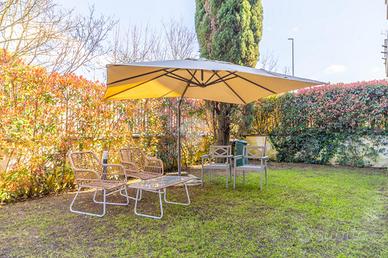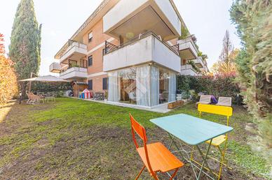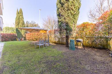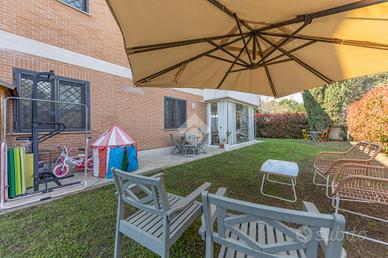 Cinquina - Via Luigi Polacchi Proponiamo in vendita un elegante appartamento al piano terra, situato in un contesto tranquillo e riservato, ideale per chi desidera comfort e qualità abitativa. L'immobile, finemente ristrutturato, si sviluppa su una superficie interna di circa 80 mq, distribuiti in modo funzionale, ed è circondato da un giardino privato di circa 200 mq, completamente attrezzato, perfetto per momenti di relax all'aperto. L'ingresso conduce ad un ampio salone, affiancato da una cucina separata e da poco ristrutturata. Completa la zona giorno una raffinata sala da pranzo realizzata in serra bioclimatica, che garantisce un ambiente accogliente e luminoso in ogni stagione. La zona notte è composta da una cameretta e da una spaziosa camera padronale dotata di bagno interno e cabina armadio. L'immobile dispone inoltre di un secondo bagno finestrato, completo di box doccia. Tra le dotazioni di sicurezza e comfort si segnalano impianto di allarme con telecamere interne ed esterne, grate di sicurezza, zanzariere su tutte le finestre, tapparelle elettriche e impianto di climatizzazione presente in tutti gli ambienti. Completano la proprietà un box auto e una cantina. Soluzione ideale per chi è alla ricerca di un'abitazione moderna, immersa nella tranquillità, senza rinunciare a spazi ben organizzati e finiture di qualità.